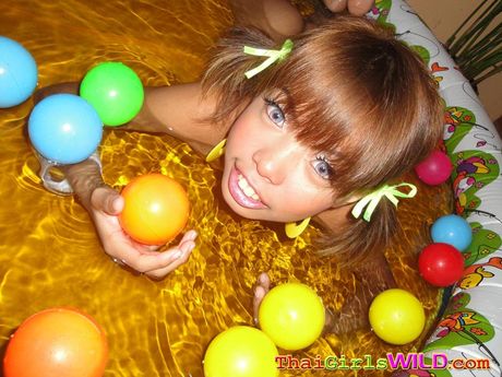 Thai Girls Wild: Petite Thai cutie takes pictures of herself posing in a blowup pool